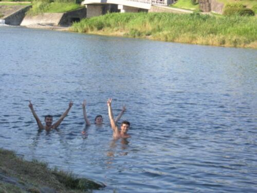 気持ちよさそうに水遊びをしているが、この日の京都は38.5℃。 気持ちは分からないでもないが、都会の真ん中を流れる川で決して清流とは言いがたいと思うのは、 京都人だけかもしれない。